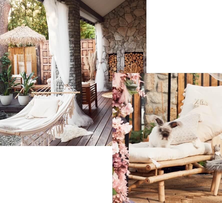 Szklarnia Królik to miejsce stworzone z myślą o fotografach, trenerach jogi, organizatorach warsztatów oraz miłośnikach natury. Otoczona zielonym ogrodem szklarnia z przepięknym trawnikiem, ozdobnymi roślinami, oczkiem wodnym, zapewnia komfortową przestrzeń do tworzenia niezapomnianych kadrów, ćwiczeń i medytacji. Oprócz urokliwej szklarni w ogrodzie znajdziesz taras w stylu boho oraz eleganckie meble ogrodowe i wiele niepowtarzalnych akcesoriów, które zapewnią ciekawe tło – zarówno do fotografii komercyjnych jaki i prywatnych.